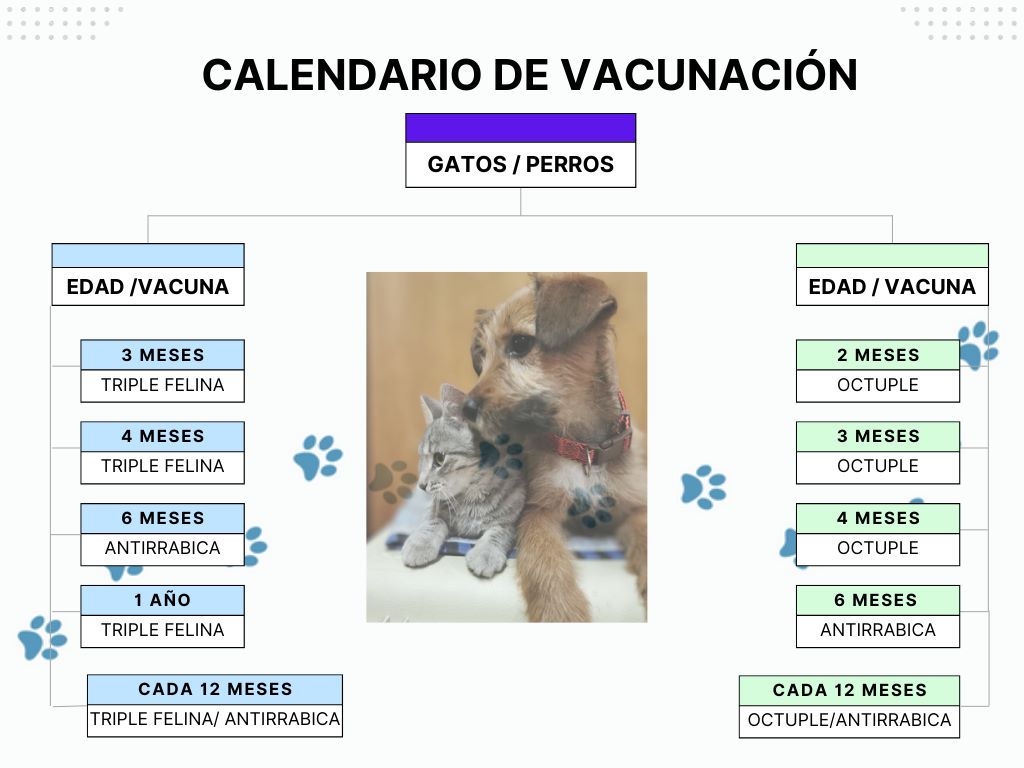 Este es un calendario con las vacunas que debe tener todo perro y gato, para crecer sano.